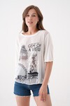 Kadın Bisiklet Yaka Kısa Kol Baskı Detaylı Spor Şık Curve Beli Lastikli Şifon Bluz