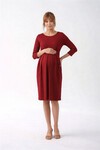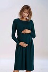 Kadın Bisiklet Yaka Tesettüre Uygun Uzun Kol Viskon Gizli Emzirme Bölümlü Şık Hamile Elbisesi