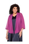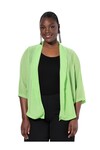 - %100 polyester materyalden üretilmiş, dayanıklı ve uzun ömürlü kullanım sunar.; - Astarsız yapısıyla hafif ve rahat bir giyim deneyimi sağlar.; - İnce tül dokusu sayesinde şık ve zarif bir görünüm kazandırır.; - Her mevsime uygun tasarımı ile yıl boyu tercih edilebilir.; - Sürdürülebilirlik detayına sahip olmayan bu ceket, ekolojik kaygıları ön planda tutmaz.; - Büyük beden koleksiyonuna özel olarak tasarlanmıştır; her vücut tipine uyum sağlayacak şekilde geniş kalıplara sahiptir.; - Cepsiz tasarımı ile minimalist ve modern bir stil oluştururken, şal yaka detayı sofistike bir hava katmaktadır.; - Türkiye'de üretilmiştir; yerel üretim avantajlarından faydalanmanızı sağlar.; - Standart boyuyla farklı boylardaki kullanıcıların rahatça tercih etmesine olanak tanır.; - Örme kumaşı esneklik sunarak gün boyu konforlu bir kullanım vaat eder.; - Truvakar kol kesimiyle trendleri takip eden bir görünüm sergiler.; - Düz deseni sayesinde kombinlemesi kolaydır; çeşitli aksesuarlarla zenginleştirilebilir.