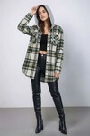 Kadın Desen Bloklu Oduncu Oversize Geniş Kalıp Casual Cepli Kapüşonlu Uzun Boy Ceket Gömlek