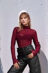 Kadın Esnek Desenli Dantel Spor Şık Tasarım Uzun Kol Gece Bluzu