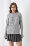 Kadın Kendinden Dokulu Uzun Kollu Bisiklet Yaka Spor Şık Kışlık Triko Kazak