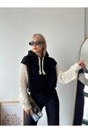 Kadın Kolları Örgü Triko Süper Şık Tasarım Oversize Crop Boy Siyah Sweatshirt