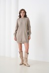 Kadın Kolları Uzun Kendinden Dokulu Bisiklet Yaka Tunik Boy Şık Kışlık Triko Kazak