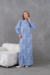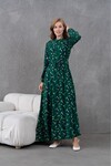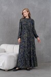 Kadın Tesettüre Uygun Desenli Uzun Kol Beli Bağcıklı Maxi Boy Rahat Büyük Beden Şık Pamuk Elbise