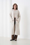 Kadın Tesettüre Uygun Maxi Boy Uzun Kol Cepli Spor Şık Triko Ceket