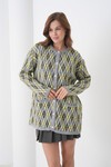 Kadın Tesettüre Uygun Önden Düğmeli CepliUzun Kol Şık Geniş Kalıp Desenli Triko Ceket