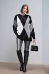 Kadın Uzun Kol Baklava Desen Bisiklet Yaka Tunik Boy Triko Büyük Beden Oversize Kazak Tunik