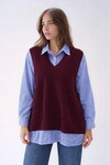 Kadın Uzun Kol Gömlek Yaka İçi Gömlekli Triko Yelekli Spor Şık Gömlek Kazak