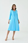Kadın Yakası Güpürlü A Kesim Yarım Kol Viskon Günlük Midi Boy Büyük Beden Elbise Gecelik