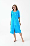 Kadın Yarım Kısa Kol Fermuarlı U Yaka Rahat Kalıp Büyük Beden Curve Ev Plaj Midi Havlu Elbise