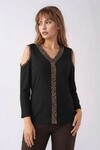Kadon Omzu Açık Truvakar Kol Leopar Biyeli Rahat Kalıp Spor Şık Bluz
