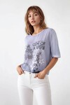 Kadın Bisiklet Yaka Kısa Kol Baskı Detaylı Spor Şık Curve Beli Lastikli Şifon Bluz