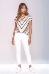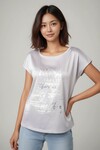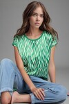 Kadın Bisiklet Yaka Saten Viskon Kısa Kol Spor Şık Desenli Bluz
