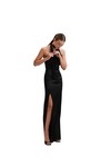 Kadın Boyundan Bağlamalı Vücudu Saran Maxi Sırtı Açık Saten Kolsuz Şık Yazlık Abiye Gece Elbise