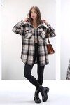 Kadın Desen Bloklu Oduncu Oversize Geniş Kalıp Casual Cepli Kapüşonlu Uzun Boy Ceket Gömlek