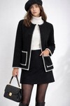 Kadın Dik Yaka İp Örgü Detaylı Rahat Kalıp Uzun Kol Tasarım Triko Ceket