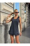 Kadın Eteği Taşlı Tül ve Güpür Detaylı Kalın Askılı Yıkamalı Büyük Beden Curve Tunik Elbise Bluz