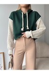 Kadın Kolları Örgü Triko Süper Şık Tasarım Oversize Crop Boy Siyah Sweatshirt