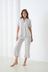 Kadın Pamuk Gömlek Kapri Şık Casual Curve Alt Üst Gecelik Takımı
