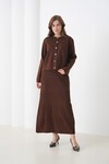 Kadın Pileli Etek Kazağı Düğmeli Tesettüre Uygun Örgü Triko Etekli Ceket Takım