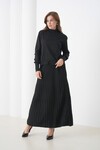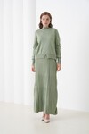 Kadın Pileli Etek Kazağı V Tasarım Tesettüre Uygun Örgü Triko Etek Kazak Takım