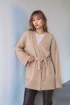 Kadın Tesettüre Uygun Midi Boy Kruvaze Kapama Kuşaklı Uzun Kol Cepli Spor Şık Triko Hırka Ceket