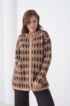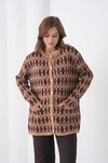 Kadın Tesettüre Uygun Önden Düğmeli CepliUzun Kol Şık Geniş Kalıp Desenli Triko Ceket