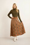 Kadın Uzun Kol Bisiklet Yaka Eteği Renkli Katlı Spor Şık Tesettüre Uygun Triko Tasarım Elbise