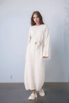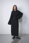 Kadın Uzun Kol Bisiklet Yaka Tesettüre Uygun Dokulu Kuşaklı Triko Spor Şık Maxi Boy Uzun Elbise
