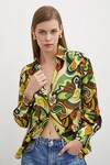 Kadın Uzun Kol Geometrik Desenli Renkli Pamuk Saten Premium Kalite Spor Şık Gömlek