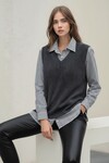 Kadın Uzun Kol Gömlek Yaka İçi Gömlekli Triko Yelekli Spor Şık Gömlek Kazak