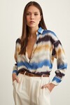 Kadın Uzun Kol Sulu Boya Desenli Renkli Pamuk Saten Premium Kalite Spor Şık Gömlek