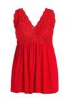 - Zarif dantel detayları ile süslenmiş, V yaka tasarımıyla feminen bir görünüm sunar.; - Askılı kol tipi sayesinde rahat hareket etme özgürlüğü sağlar ve yaz ayları için idealdir.; - Lounge veya ev ortamında şıklığınızı korumanız için tasarlanmıştır; konforlu ve stil sahibi olmanızı sağlar.; - Viskon materyali nefes alabilir yapısıyla gün boyu rahatlık sunarken, esneklik kazandırır.; - Tekli paket içeriğiyle pratik kullanım imkanı tanırken, kolayca kombinleyebileceğiniz bir seçenektir.; - Homewear koleksiyonunun parçası olarak evdeki şıklığınızdan ödün vermeden rahatlığınızı ön planda tutar.; - %95 viskoz ve %5 elastan karışımından oluşan kumaşı yumuşak dokusuyla cildinize nazikçe dokunurken dayanıklılık sunar.; - Yetişkin kadınların ihtiyaçlarına yönelik büyük beden kalıbıyla her vücut tipine uyum sağlar.; - Örme kumaş tipi sayesinde esneklik kazanan bu gecelik bluz, vücut hatlarınıza mükemmel uyum gösterir.; - Standart boy uzunluğu ile farklı boylardaki kullanıcılar için idealdir; hem kısa hem de uzun boylulara hitap eder.; - Türkiye menşeli olmasıyla yerel üretim avantajlarından faydalanarak kaliteli malzemelerle üretilmiştir.