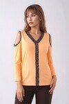 Kadon Omzu Açık Truvakar Kol Leopar Biyeli Rahat Kalıp Spor Şık Bluz